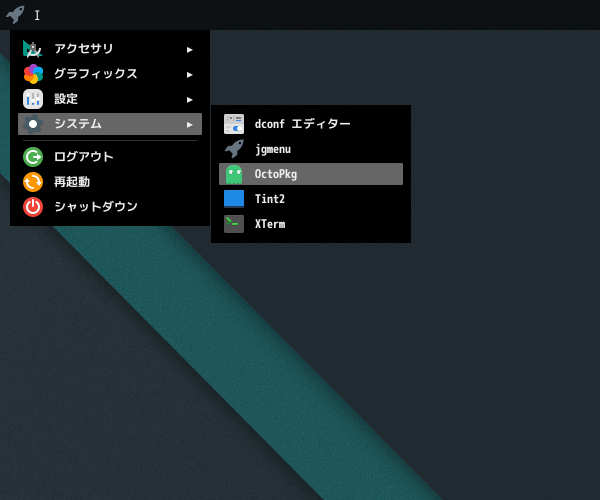 1. 概要 「OctoPkg」は、パッケージ管理「pkg」のグラフィカルフロントエンドです。 基本的な操作については共通事項の「パッケージ管理 OctoPkg」を参照してください。 2. インストール 「root」ユーザ権限で。 pkg install -y octopkg 3. 起動 「スタート」→「システム」→「OctoPkg」