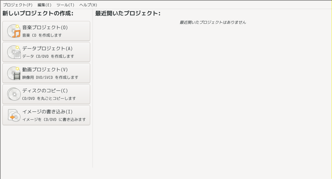 「Brasero」は、光学ディスク(CD・DVD)のライティングソフトです。