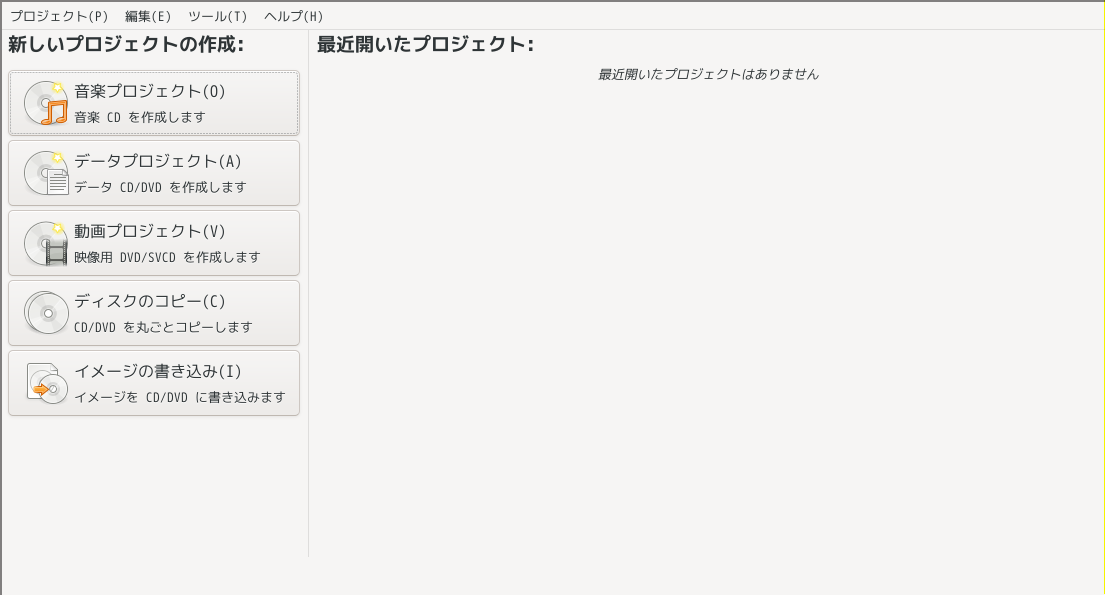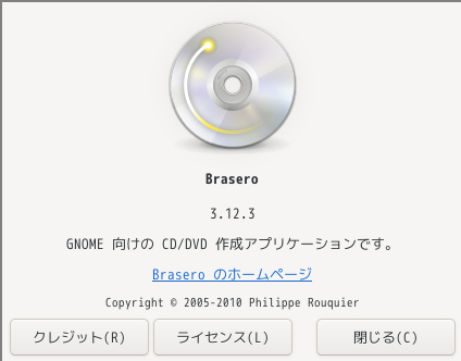 1. 概要 「Brasero」は、光学ディスク(CD・DVD)のライティングソフトです。 2. インストール 「OctoPkg」で、「brasero」を検索して、インストールします。 ログインしなおさないと、なぜか起動時にこけることが多いです。 今回は、一発目で起動できました。 3. 起動 「スタート」→「マルチメディア」→「Brasero」
