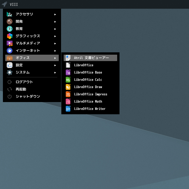1. 概要 ドキュメントビューアとして、「Atril」を使用します。 2. インストール 「OctoPkg」で、「atril」を検索して、インストールします。 3. 起動 「スタート」→「オフィス」→「Atril」