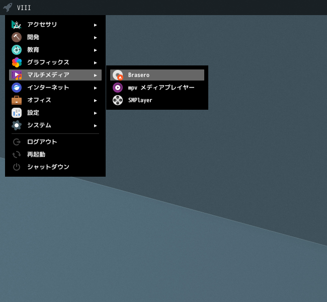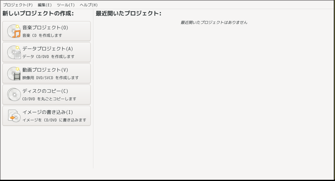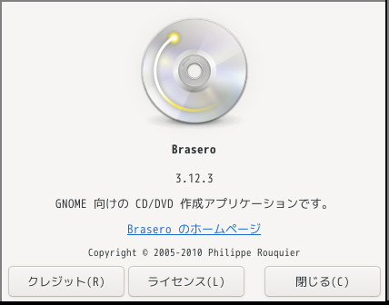 1. 概要 「Brasero」は、光学ディスク(CD・DVD)のライティングソフトです。 2. インストール 「OctoPkg」で、「brasero」を検索して、インストールします。 ログインしなおさないと、なぜか起動時にこけることが多いです。 そういうときは、ログインしなおすと正常に起動できます。 3. 起動 「スタート」→「マルチメディア」→「Brasero」