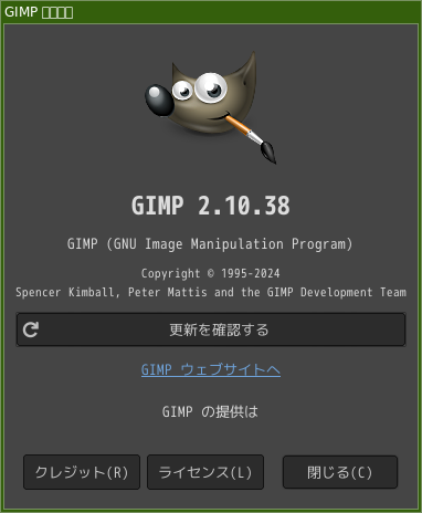 1. 概要 画像編集ソフトとして、「GIMP」を使用します。 2. インストール 「OctoPkg」で、「gimp」を検索して、インストールします。 3. 起動 「スタート」→「グラフィックス」→「GIMP」