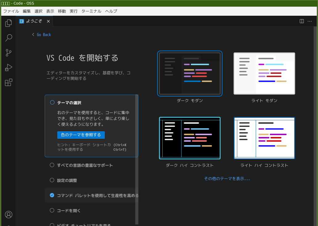 1. 概要 開発環境として、「Visual Studio Code」を使用します。 2. インストール 「OctoPkg」で、「vscode」を検索して、インストールします。 3. 起動 「スタート」→「開発」→「Code - OSS」