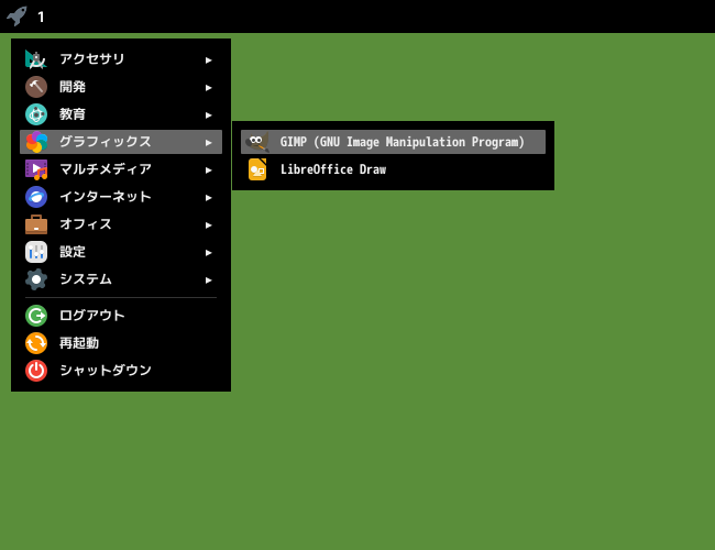 1. 概要 画像編集ソフトとして、「GIMP」を使用します。 2. インストール 「OctoPkg」で、「gimp」を検索して、インストールします。 3. 起動 「スタート」→「グラフィックス」→「GIMP」