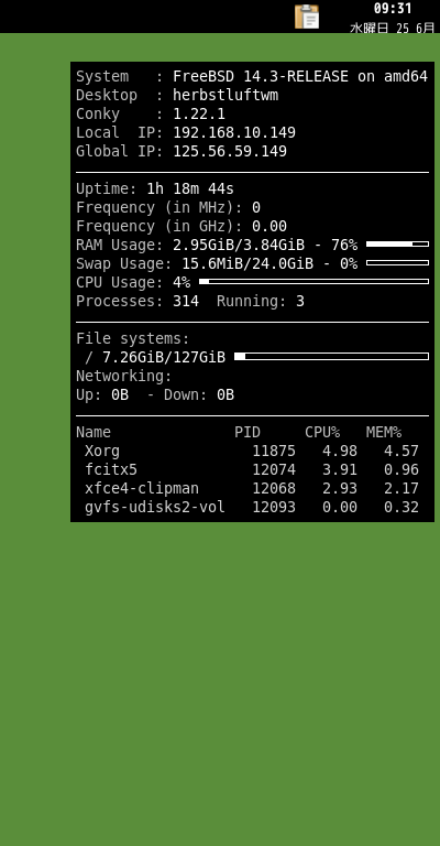 herbstluftwm - FreeBSD 14.3 - タスクマネージャ Conky