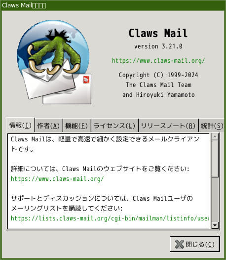1. 概要 メールクライアントとして、「Claws Mail」を使用します。 2. インストール 「OctoPkg」で、「claws-mail」を検索して、インストールします。 3. 起動 「スタート」→「インターネット」→「Claws Mail」