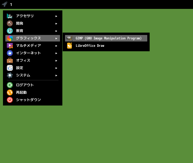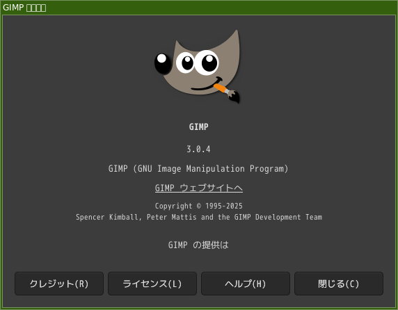 1. 概要 画像編集ソフトとして、「GIMP」を使用します。 2. インストール 「OctoPkg」で、「gimp」を検索して、「gimp3-app」をインストールします。 3. 起動 「スタート」→「グラフィックス」→「GIMP」