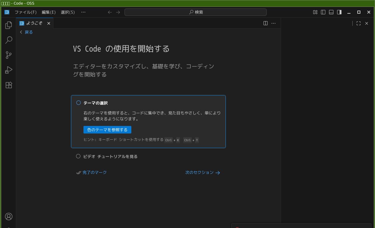 1. 概要 開発環境として、「Visual Studio Code」を使用します。 2. インストール 「OctoPkg」で、「vscode」を検索して、インストールします。 3. 起動 「スタート」→「開発」→「Code - OSS」