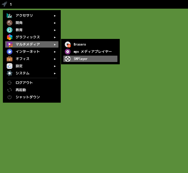 1. 概要 マルチメディアプレイヤーとして、「SMPlayer」を使用します。 2. インストール 「OctoPkg」で、「smplayer」を検索して、インストールします。 3. 起動 「スタート」→「マルチメディア」→「SMPlayer」