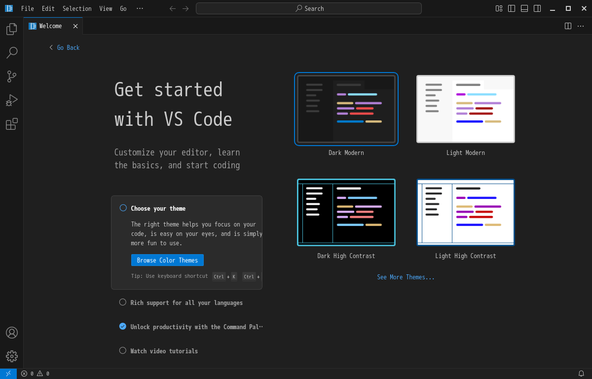 起動直後の状態です。 何故か、日本語化に失敗しますが、一時的なものだと思いますので、気長に待つしかないですね。 2025年5月19日の時点で、下記のバージョンでした。 「Visual Studio Code」の操作等については「統合開発環境 Visual Studio Code」をご参照ください。 |