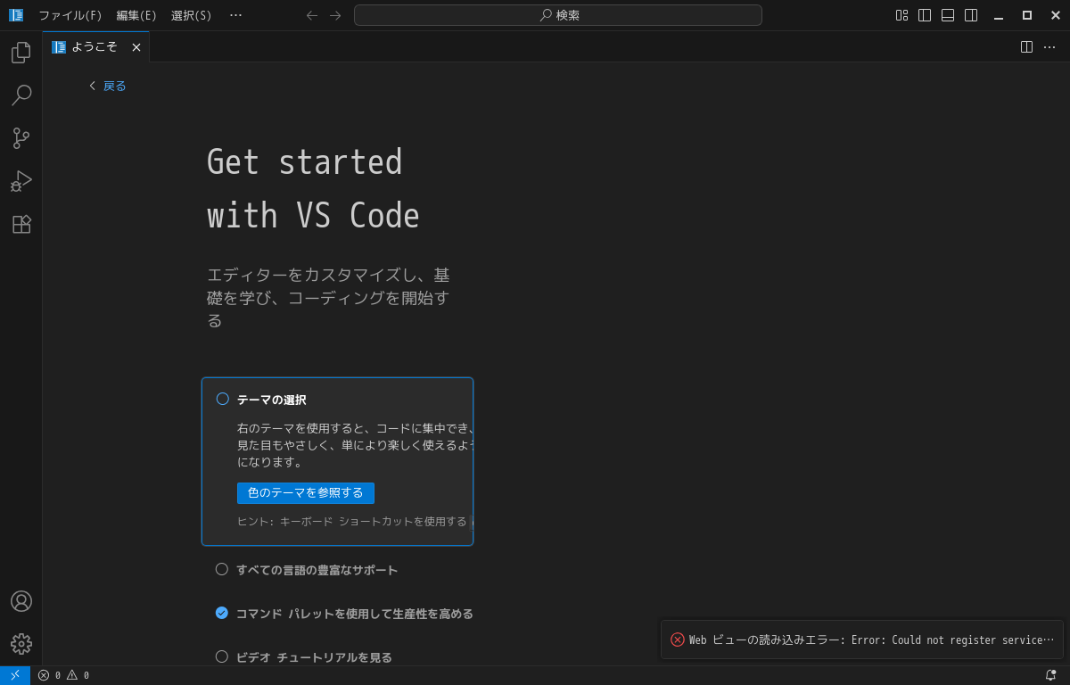 日本語化後、再起動直後の状態です。 2025年7月11日の時点で、下記のバージョンでした。 「Visual Studio Code」の操作等については「統合開発環境 Visual Studio Code」をご参照ください。 |