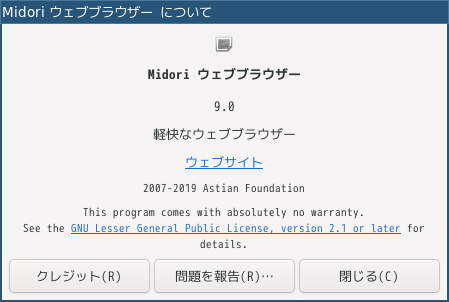 ブラウザとして、軽いので、「Midori」を使用します。