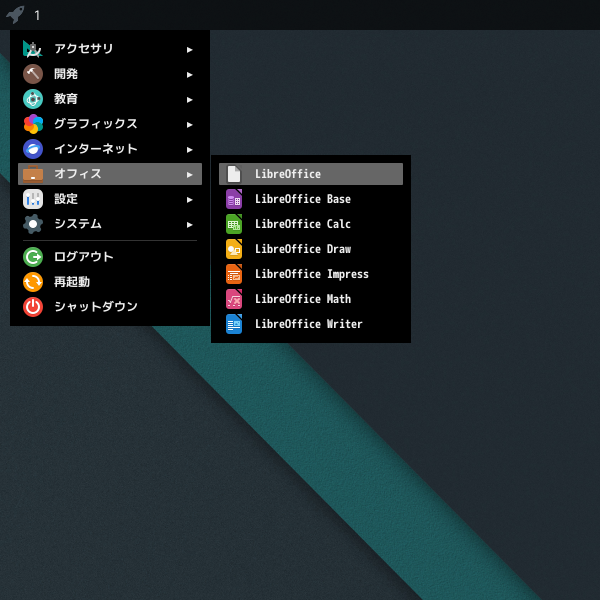 「スタート」→「オフィス」→「LibreOffice Start Center」