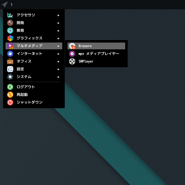 「スタート」→「マルチメディア」→「Brasero」