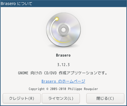 「Brasero」は、光学ディスク(CD・DVD)のライティングソフトです。