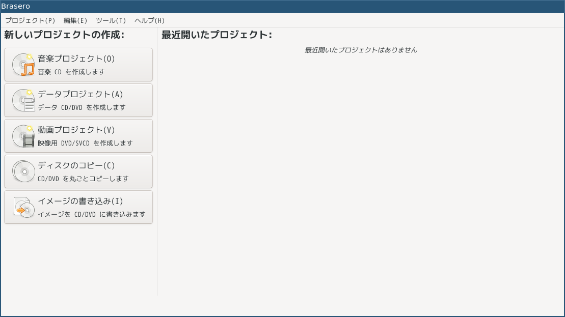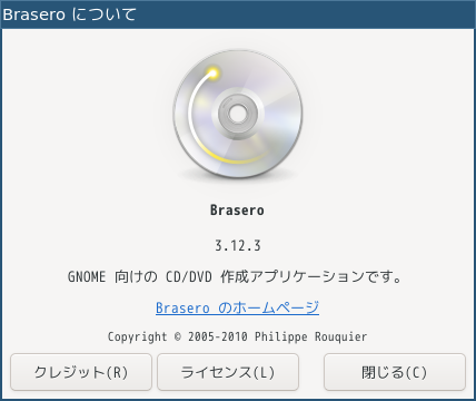 「Brasero」は、光学ディスク(CD・DVD)のライティングソフトです。