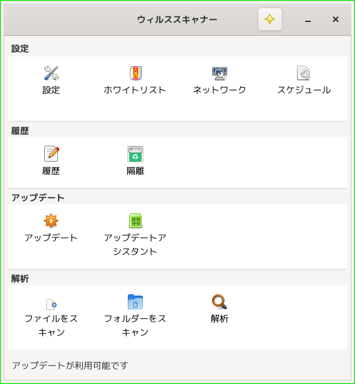 操作方法等に関しては、「デスクトップ環境構築 - 共通事項 - アンチウイルスソフト ClamTk」をご参照ください。