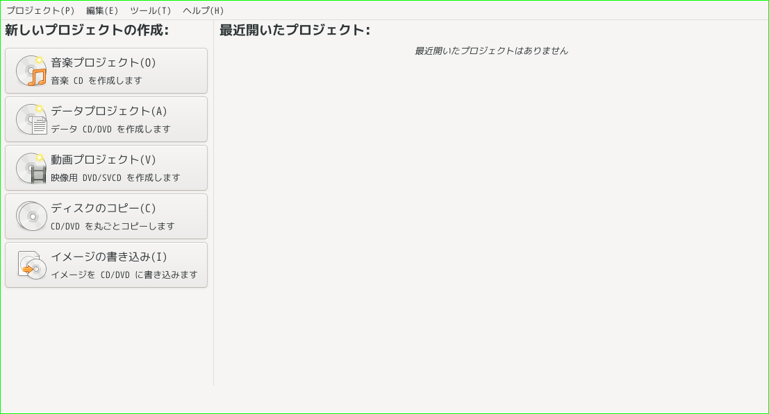 光ディスク(CD・DVD)のライティングソフトとして、「Brasero」を使用します。
