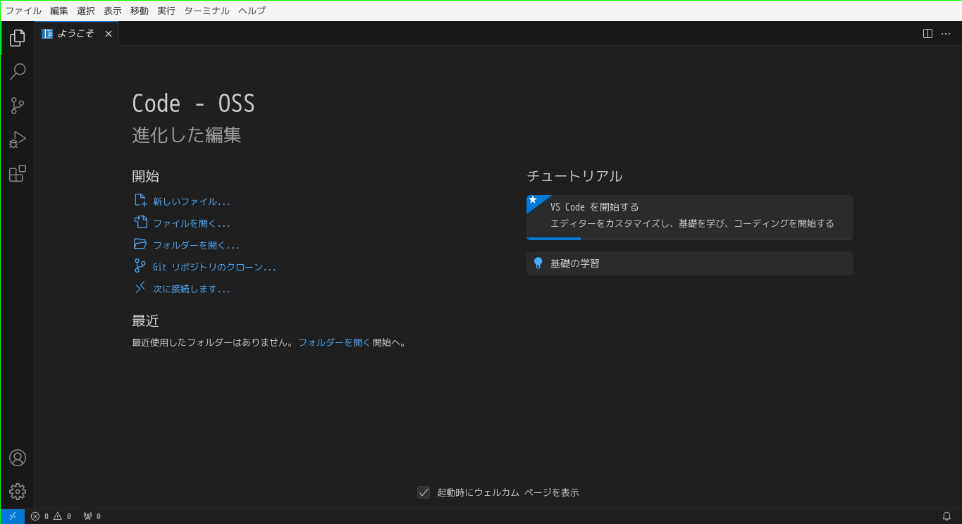 日本語化後、再起動直後の状態です。 (全画面になるので、サイズを調整しています) 2024年12月23日の時点で、下記のバージョンでした。 |