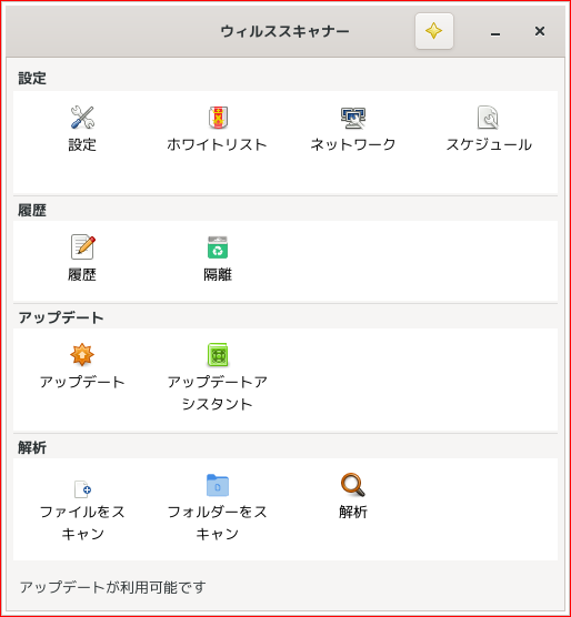 操作方法等に関しては、「デスクトップ環境構築 - 共通事項 - アンチウイルスソフト ClamTk」をご参照ください。
