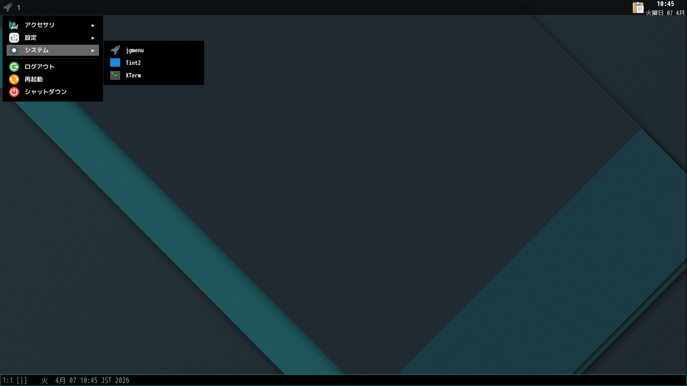 メニューは、「tint2」バーと「jgmenu」を使用します。
