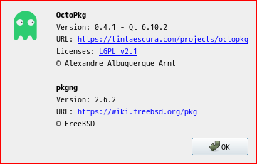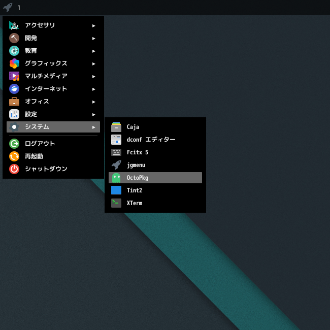 1. 概要 「OctoPkg」は、「pkg」コマンドのフロントエンドです。 2. インストール 「OctoPkg」自体は、コマンドでインストールします。 「root」ユーザ権限で。 pkg install -y octopkg 3. 起動 「スタート」→「システム」→「OctoPkg」