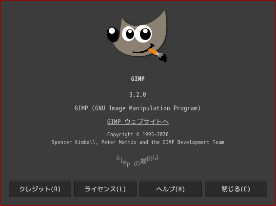 1. 概要 画像編集ソフトとして、「GIMP」を使用します。 2. インストール 「OctoPkg」で、「gimp」を検索して、「gimp3-app」をインストールします。 3. 起動 「スタート」→「グラフィックス」→「GIMP」