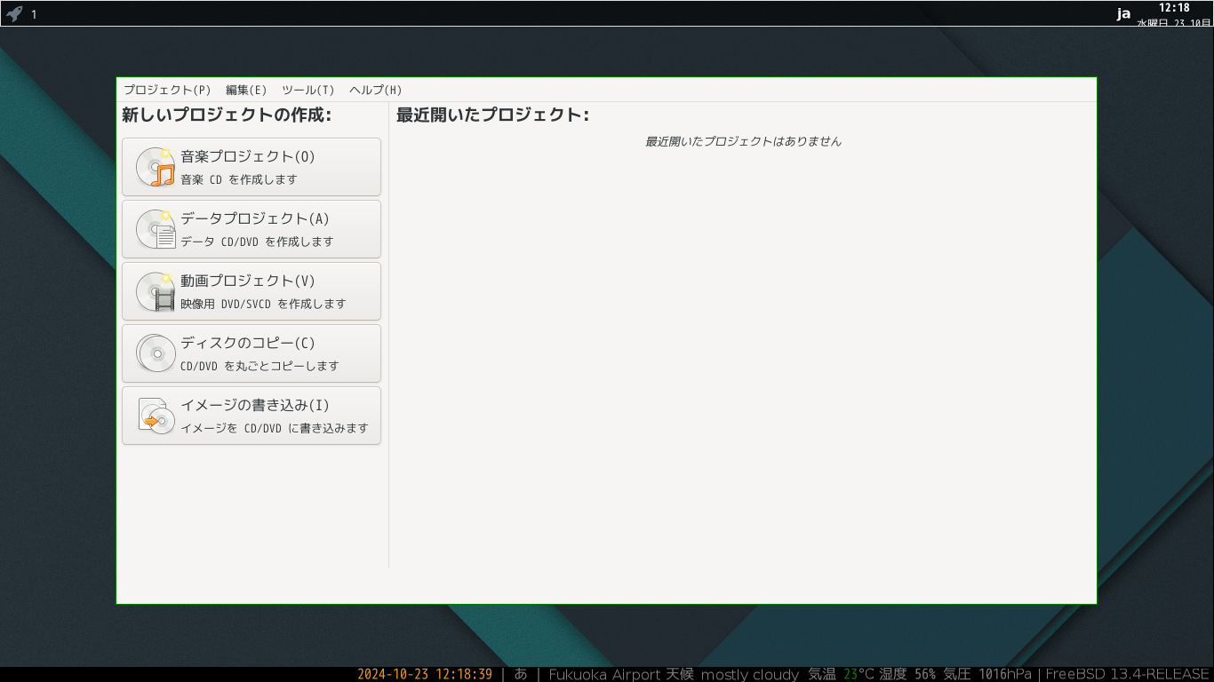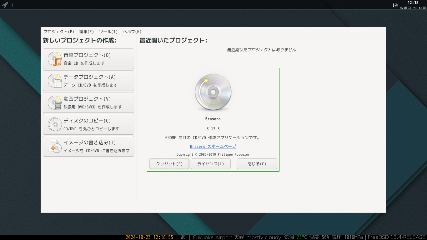 xmonad - FreeBSD 13.4 RELEASE - 光ディスクライティング Brasero