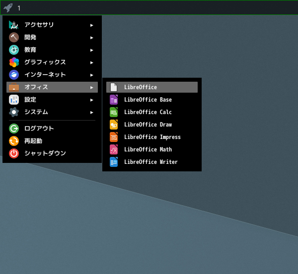 1. 概要 オフィススイートとして、「LibreOffice」を使用します。 2. インストール 「OctoPkg」で、「ja-libreoffice」を検索して、インストールします。 3. 起動 「スタート」→「オフィス」→「LibreOffice」