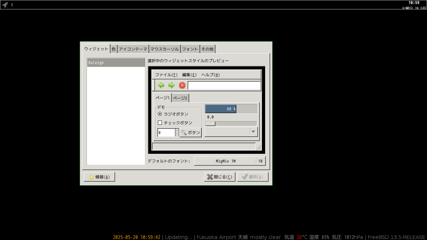 「tint2」は、他のウィンドウを表示していない状態だと終了キー(ここでは mod+q にカスタマイズ)で終了してしまうのでご注意ください。