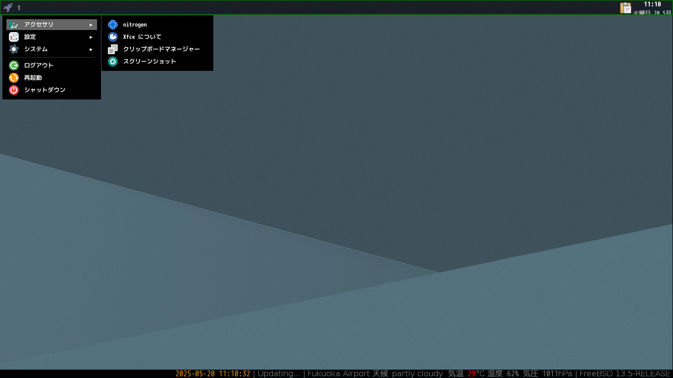 メニューを「tint2」上に「jgmenu」で表示しています。