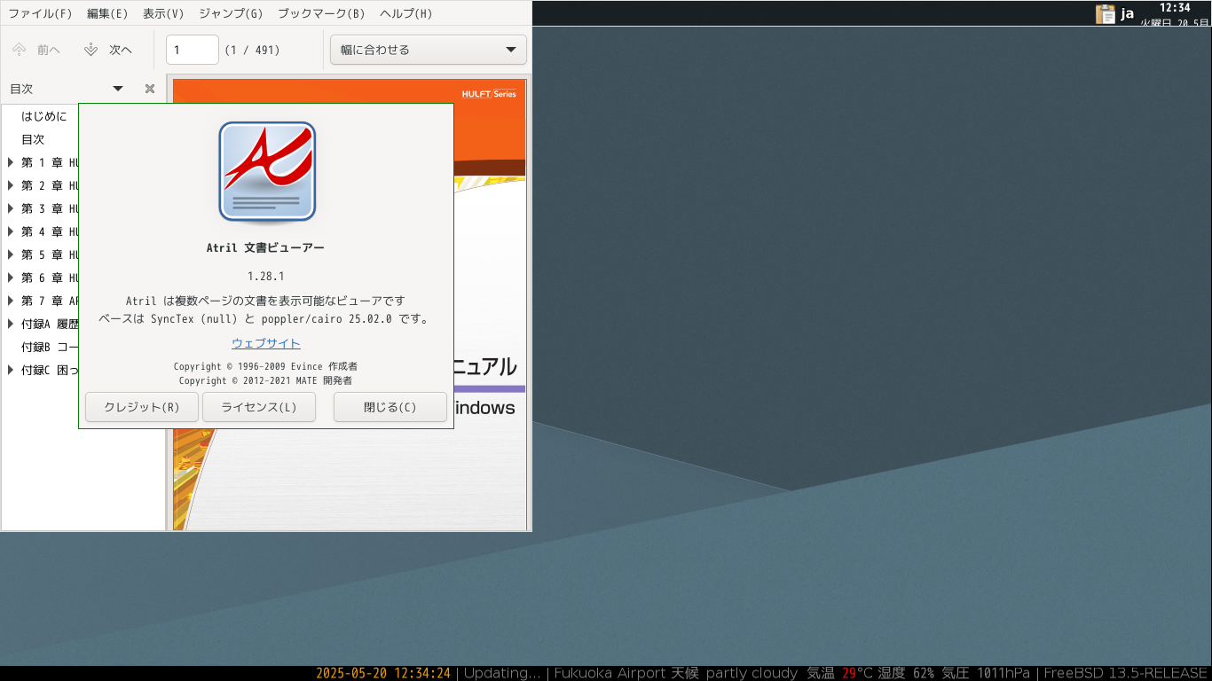 ドキュメントビューアとして、「Atril」を使用します。
