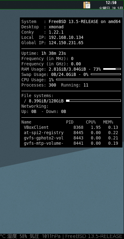 xmonad - FreeBSD 13.5 RELEASE - タスクマネージャ Conky