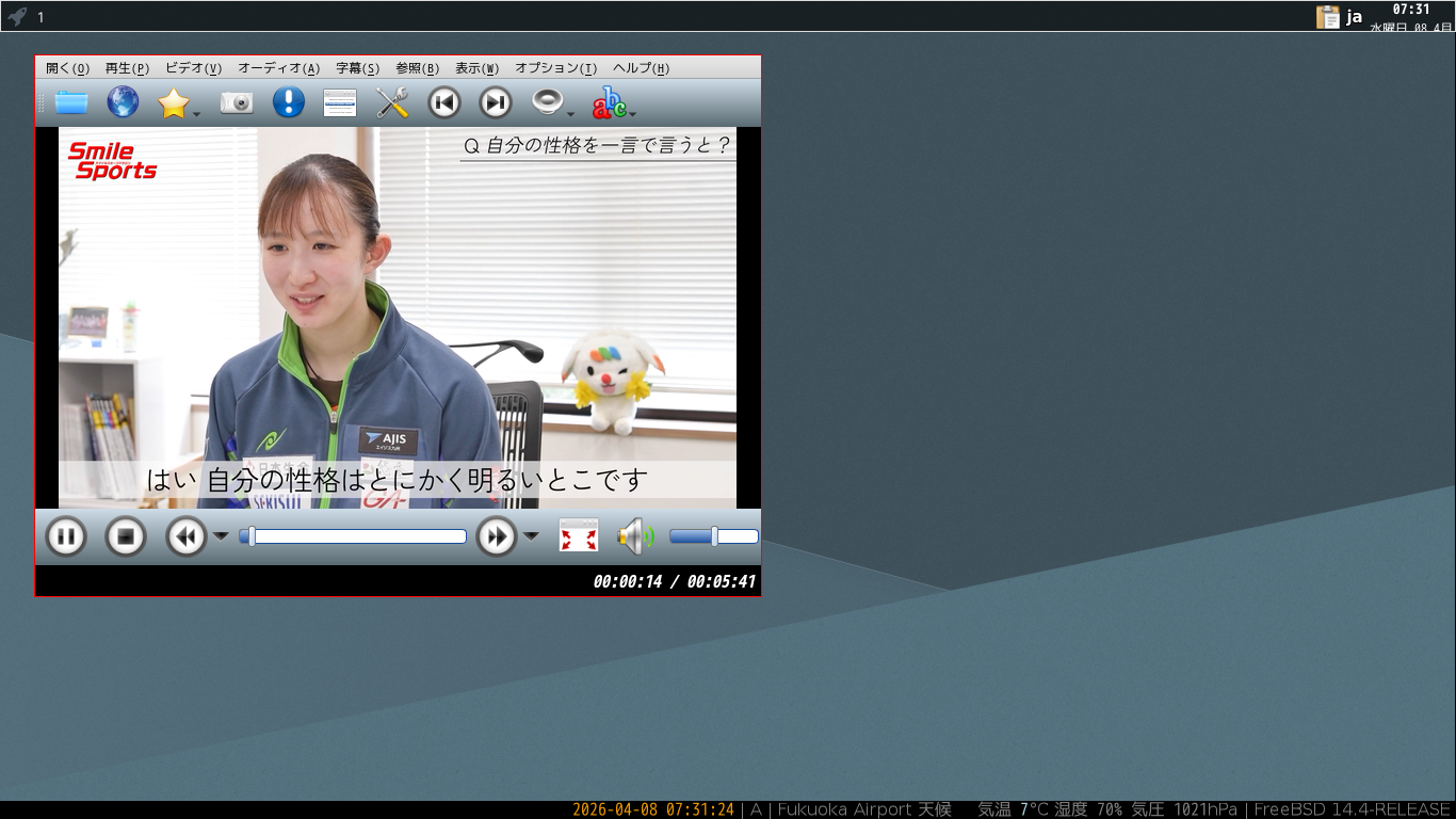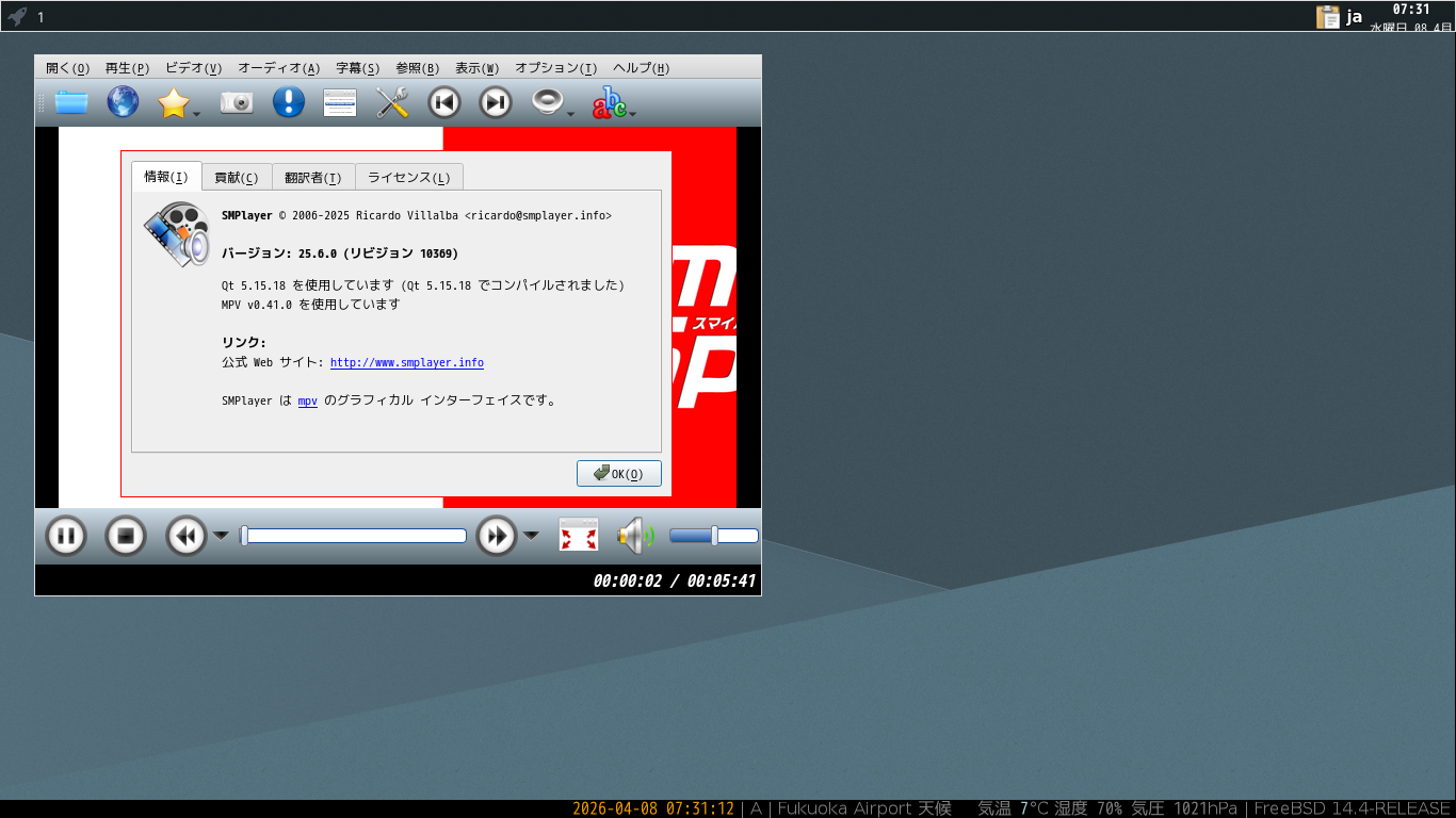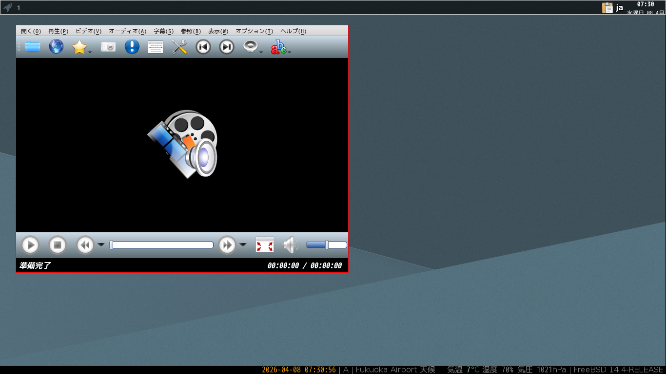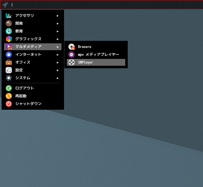 1. 概要 メディアプレイヤーとして、「SMPlayer」を使用します。 2. インストール 「root」ユーザ権限で。 pkg install -y smplayer 3. 起動 「スタート」→「マルチメディア」→「SMPlayer」