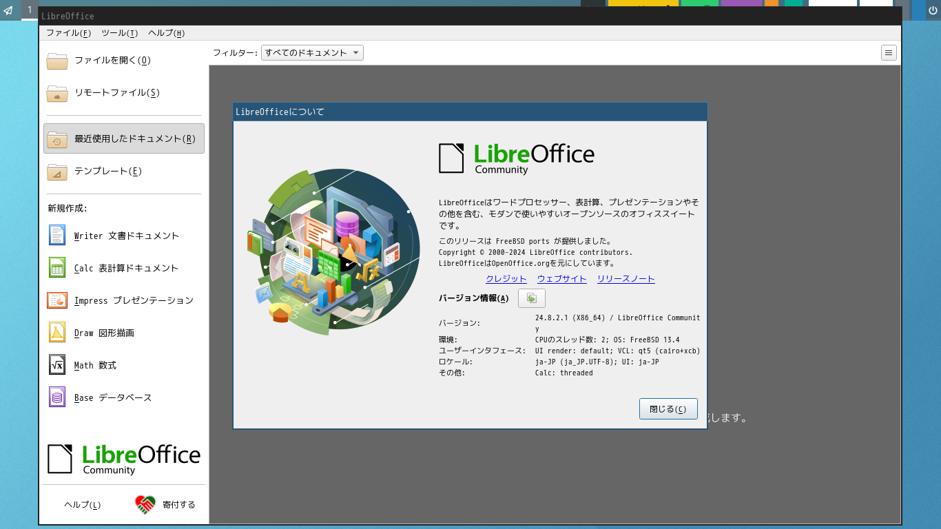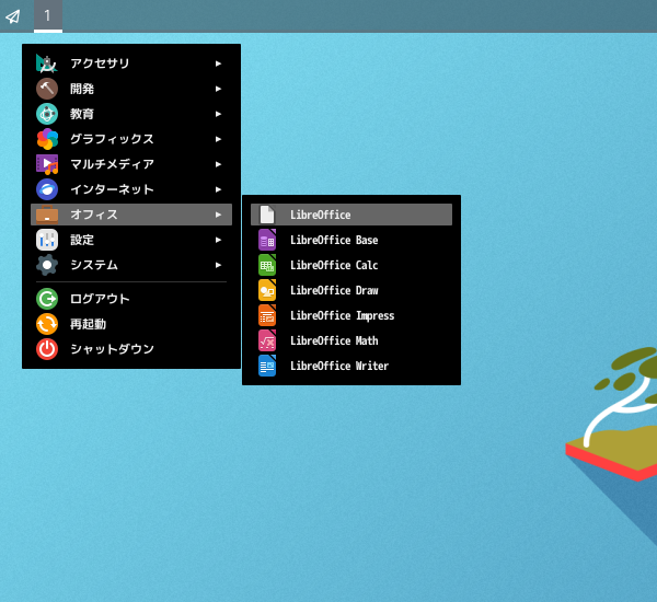 1. 概要 オフィススイートとして、「LibreOffice」を使用します。 2. インストール 「OctoPkg」で、「ja-libreoffice」を検索して、インストールします。 3. 起動 「スタート」→「オフィス」→「LibreOffice」