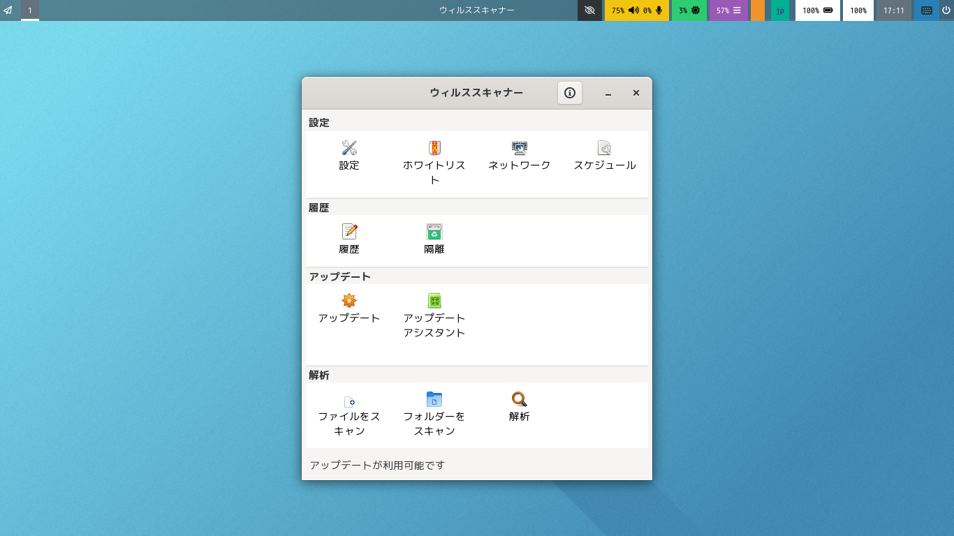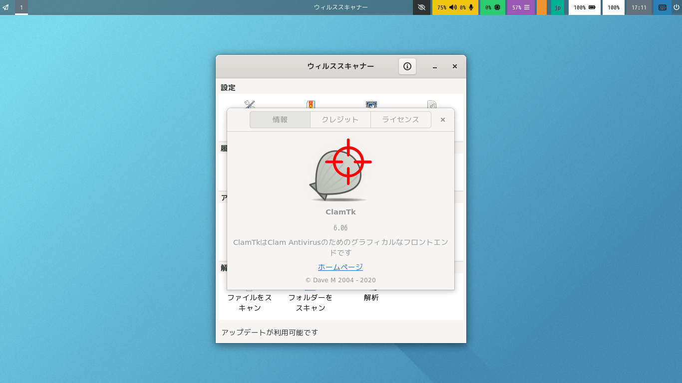 操作については「アンチウイルスソフト ClamTk」をご参照ください。