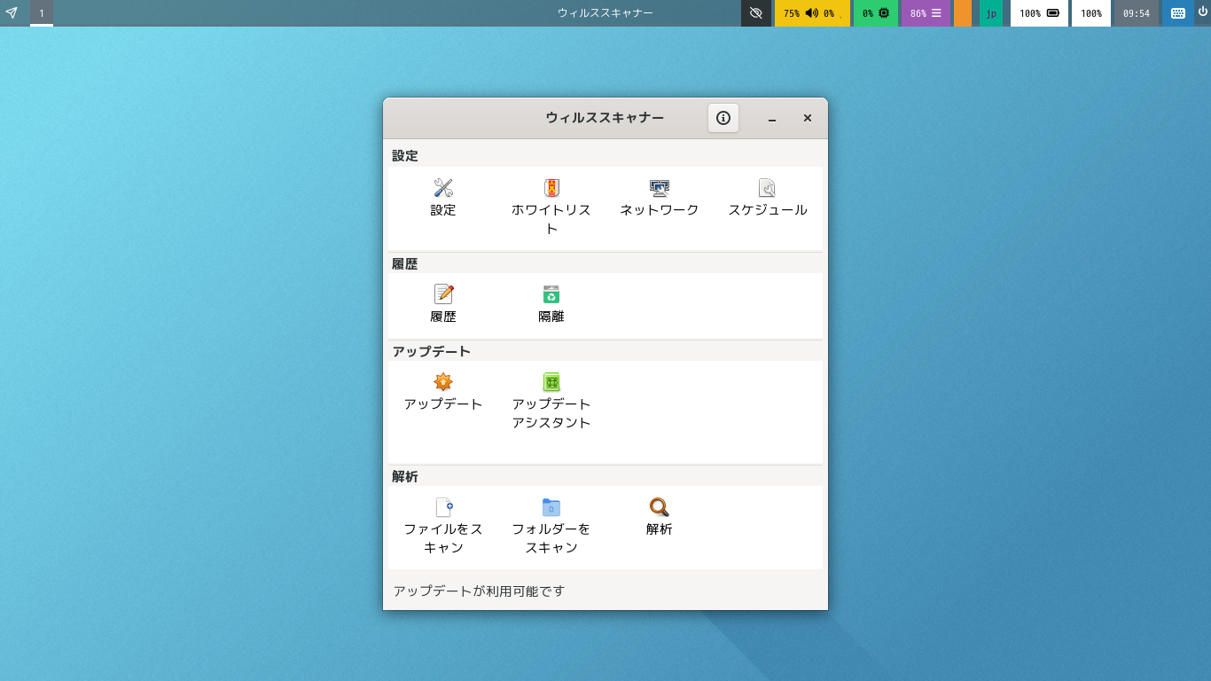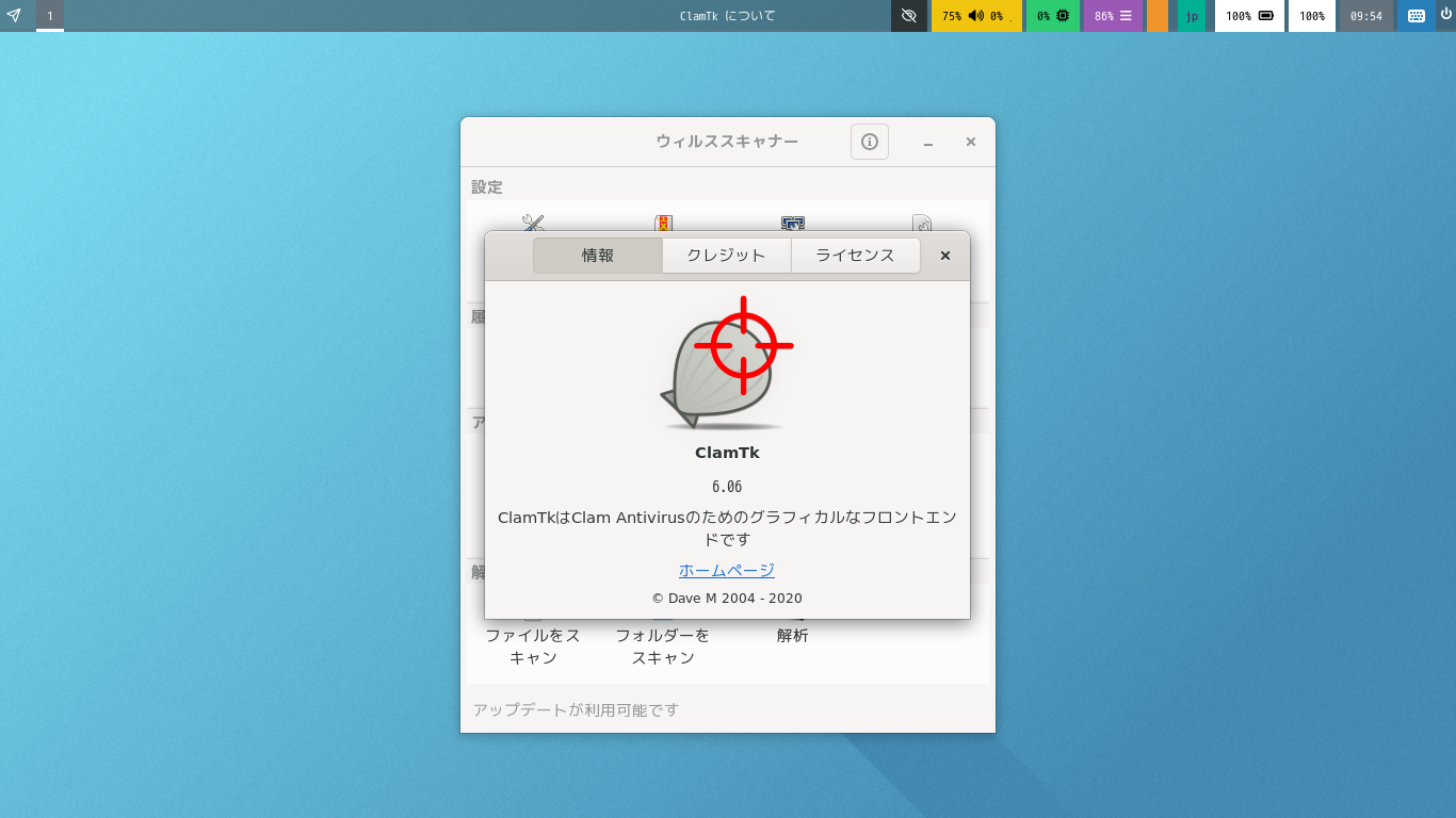 操作については「アンチウイルスソフト ClamTk」をご参照ください。
