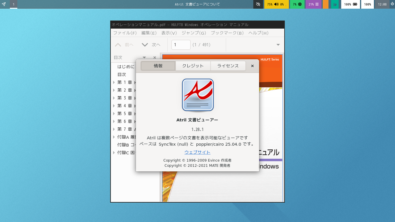 1. 概要 ドキュメントビューアとして。「Atril」を使用します。 2. インストール 「OctoPkg」で、「atril」を検索して、インストールします。 3. 起動 「スタート」→「オフィス」→「Artil ドキュメントビューア」