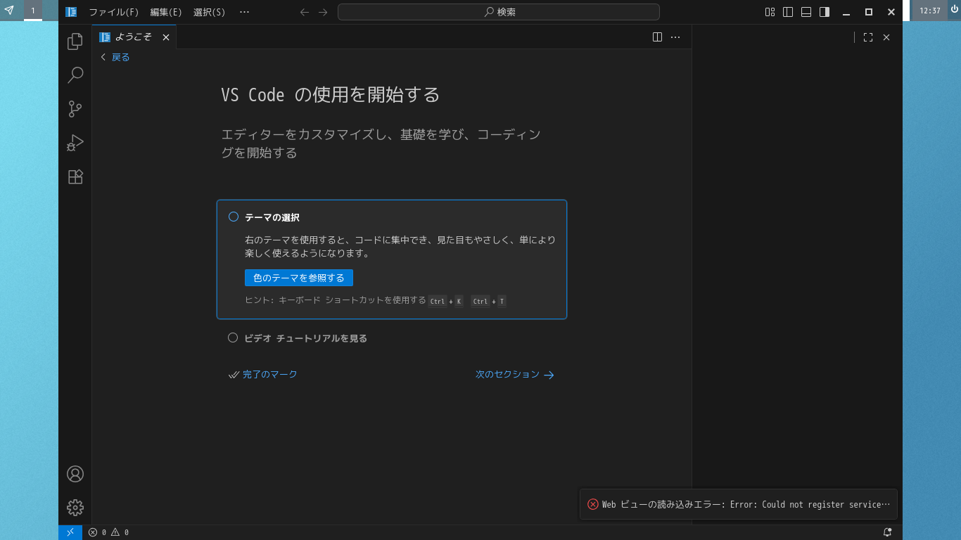 日本語化後、再起動直後の状態です。 (前回、日本語化に失敗していましたが、今回は成功しました) 2025年12月26日の時点で、下記のバージョンでした。 「Visual Studio Code」の操作等については「統合開発環境 Visual Studio Code」をご参照ください。 |