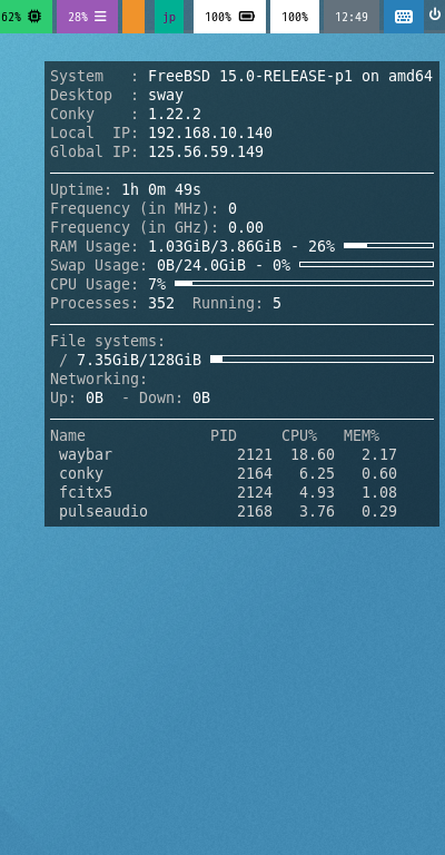 「Conky」は、「Unix」「Linux」で動作する、タスクマネージャです。