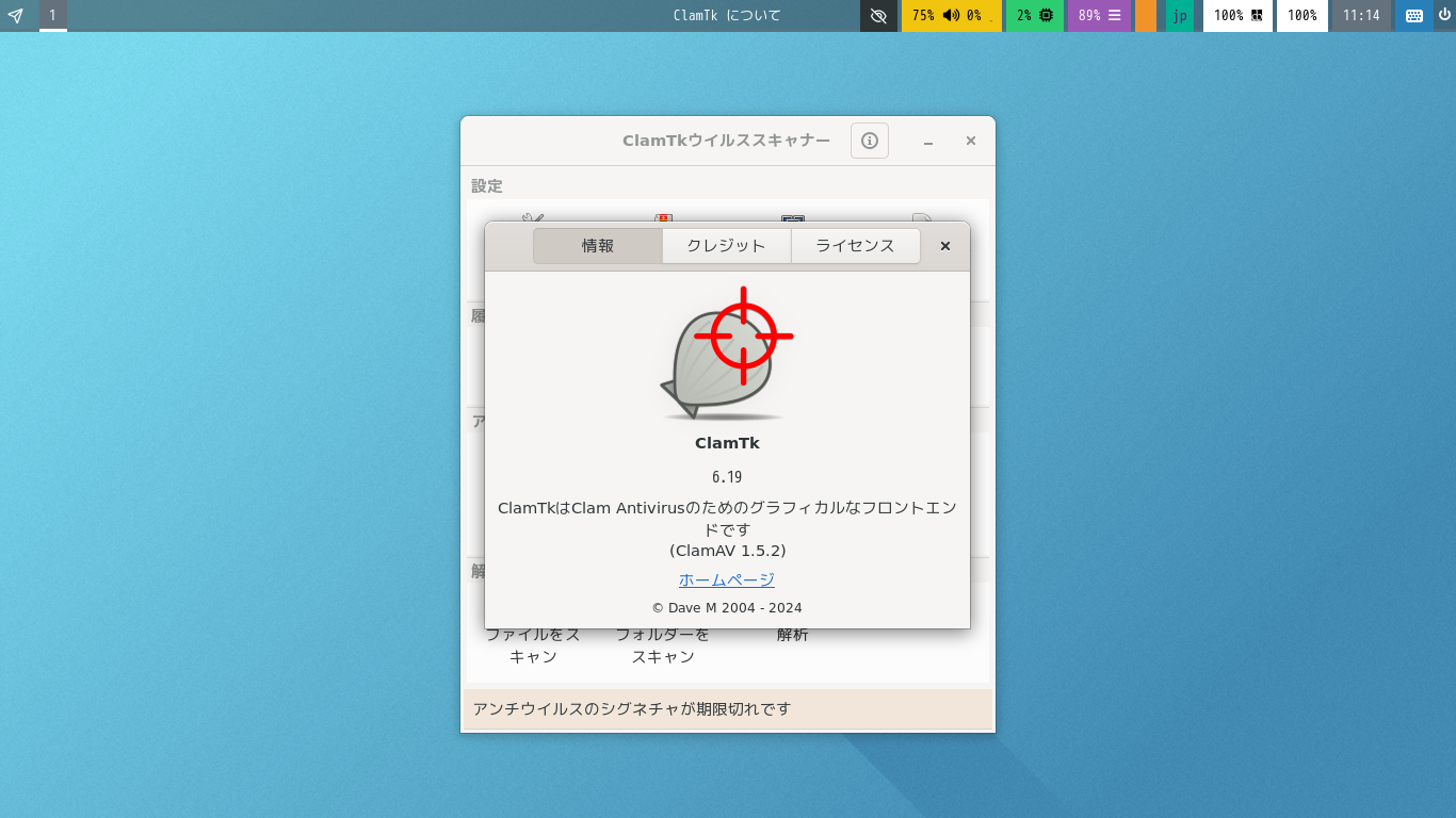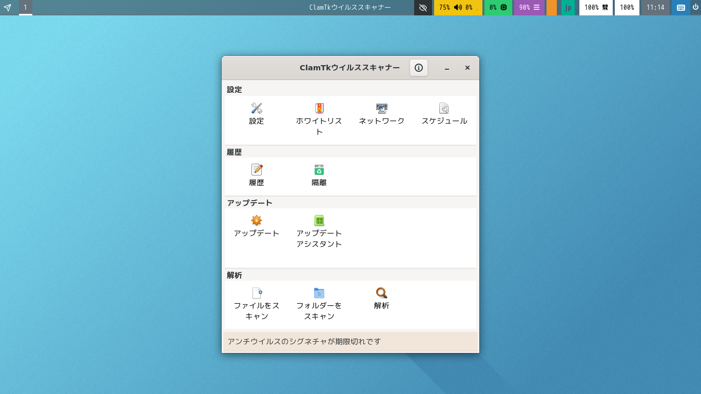 操作については「アンチウイルスソフト ClamTk」をご参照ください。