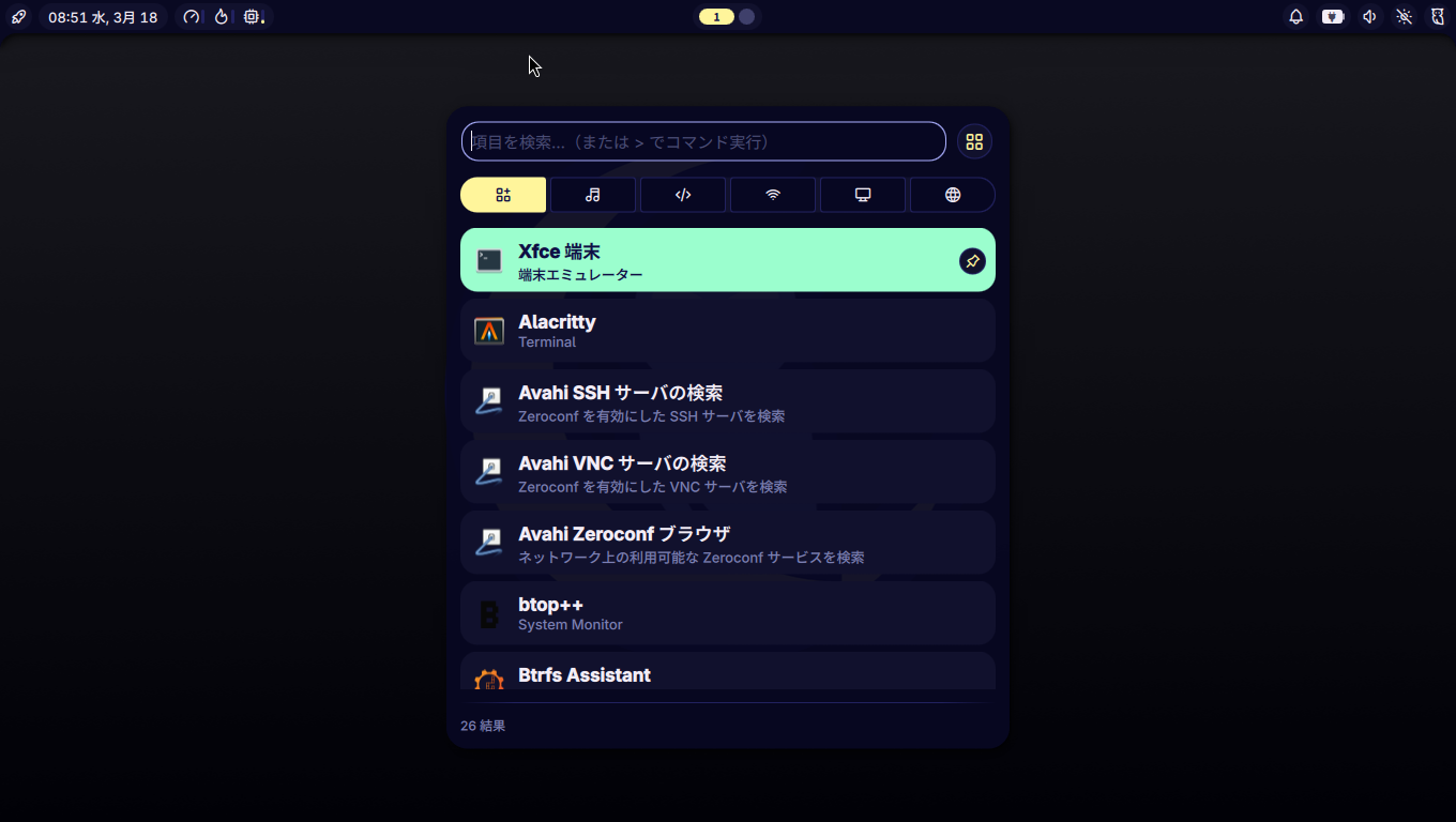 「noctalia-shell」というものが、バーとして動作しているようです。