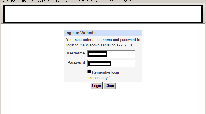 ブラウザで Webmin にログインします。