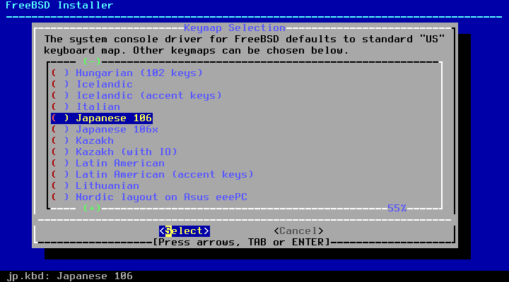 ↓ や PageDown で使用しているキーボードに合うものを選択して Enter