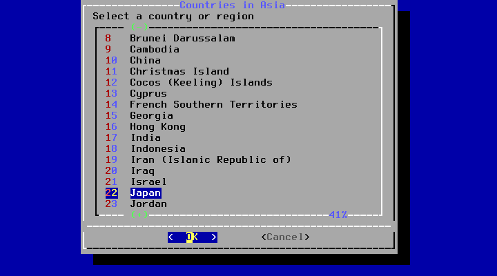 「Asia」を選択して Enter