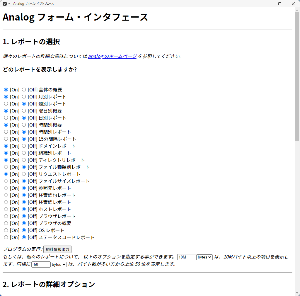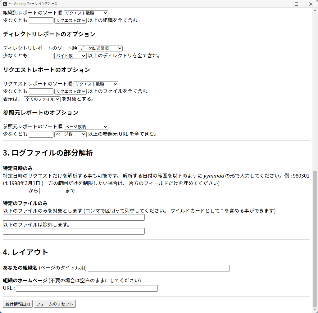 「FreeBSD 13.4 RELEASE」-「apache24」「ログ解析ツール analog」「Analog フォーム・インタフェース」「最上部」