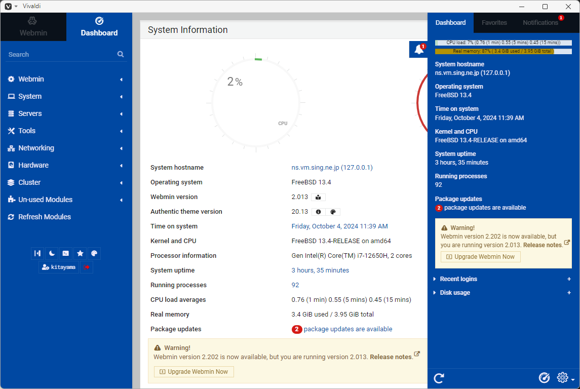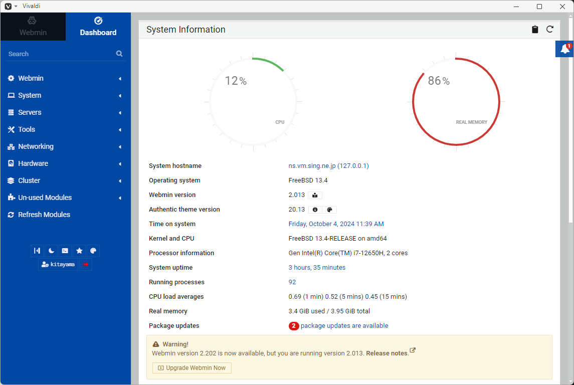 FreeBSD 13.4 RELEASE - Webmin - 初期設定