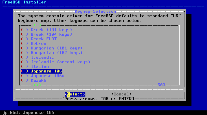 ↓ や PageDown で使用しているキーボードに合うものを選択して Enter