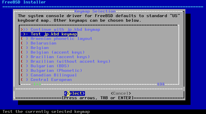 最上位の「Continue with ... keymap」を選択して Enter