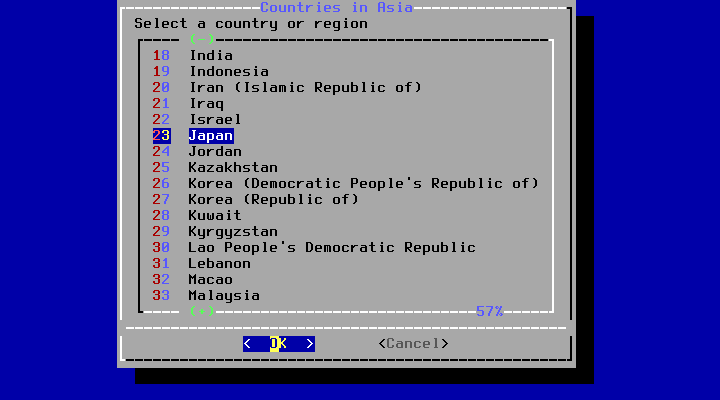 「Asia」を選択して Enter